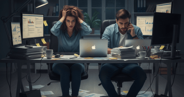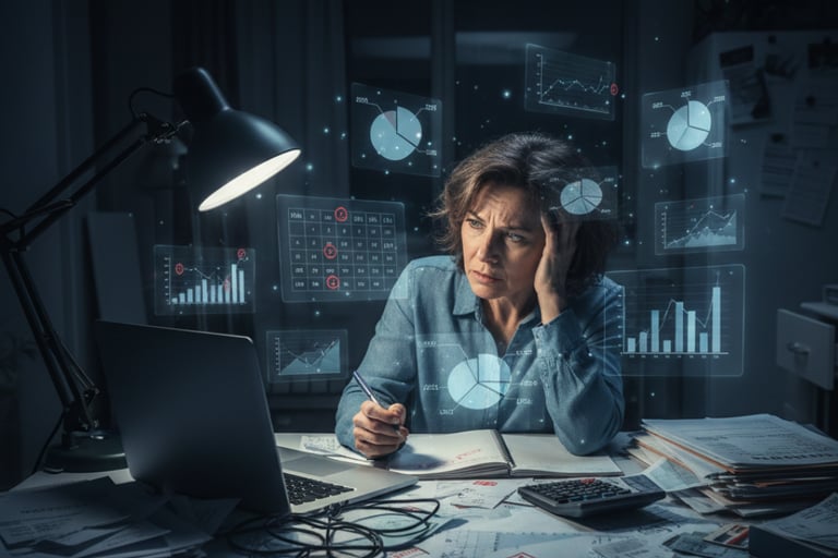 Personas con presión financiera (preocupaciones, cálculos, pendientes)